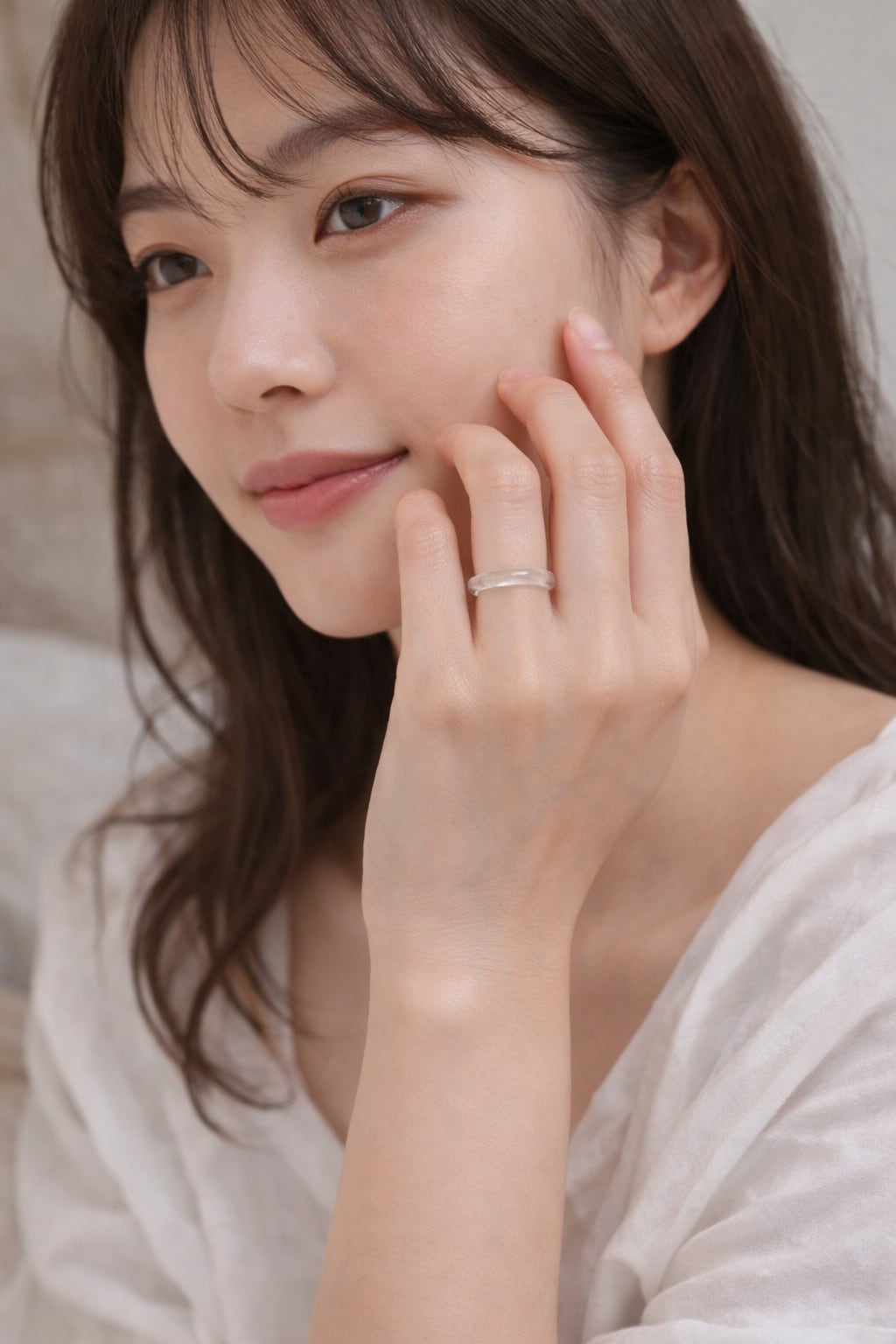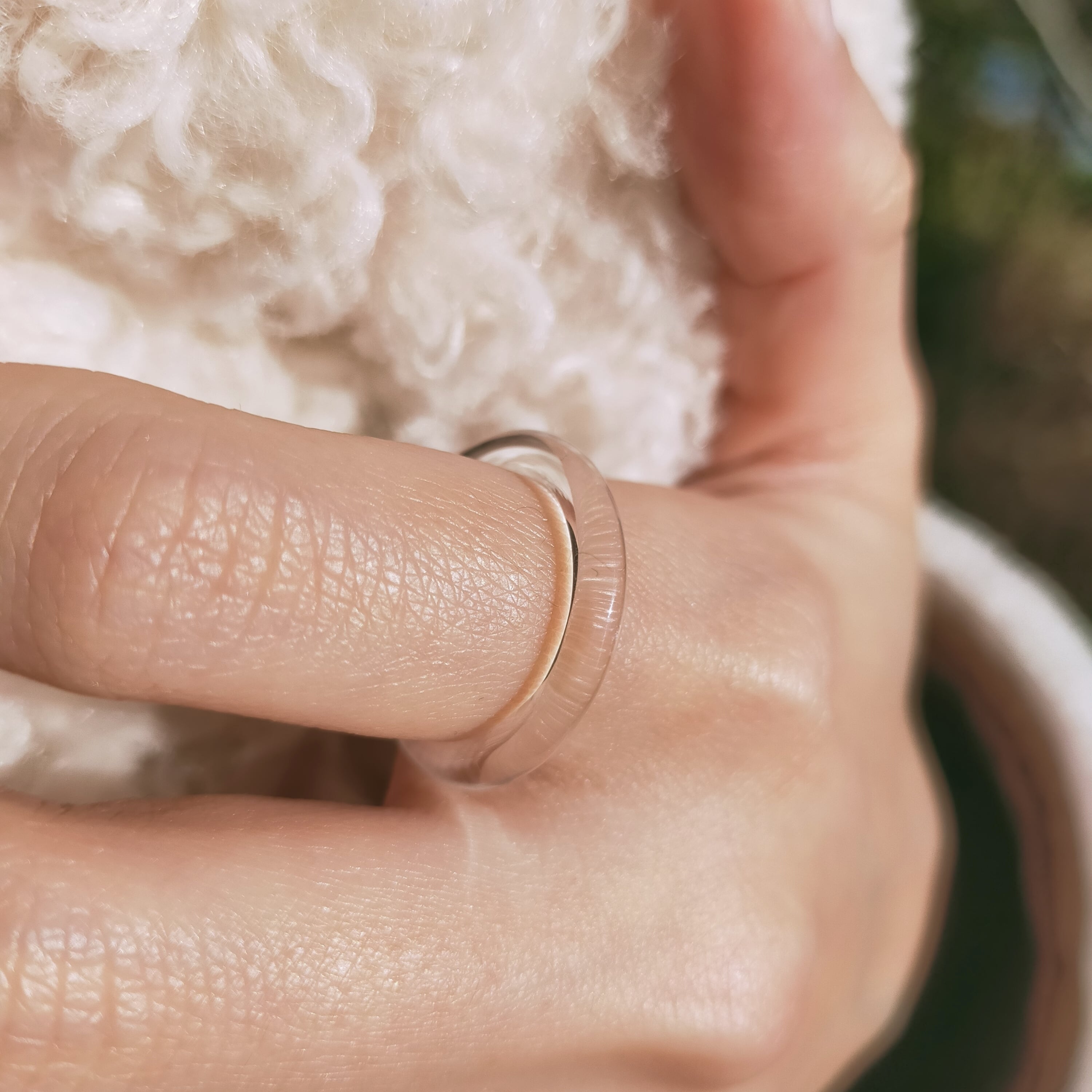指にはめた瞬間、ガラス特有のやわらかな光が指先に溶け込み
